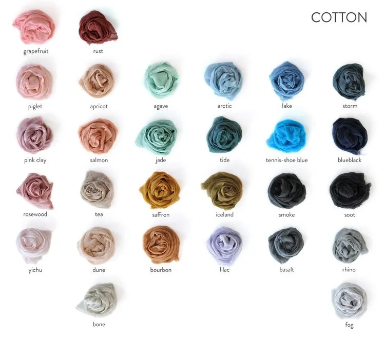 Note that colors are approximate and may show up slightly different on your computer screen. Kettle dyeing in small batches gives the scarves a rich and slightly mottled appearance.